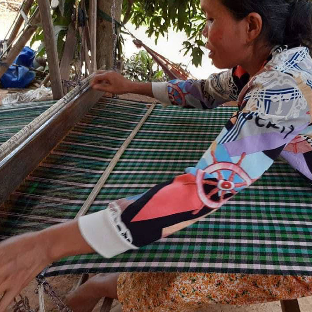100% cotton, Krama weaving is an integral part of the rural landscape. It's a time-consuming task that requires patience and precision. In fact, it takes at least eight hours to weave one meter seventy of Krama.