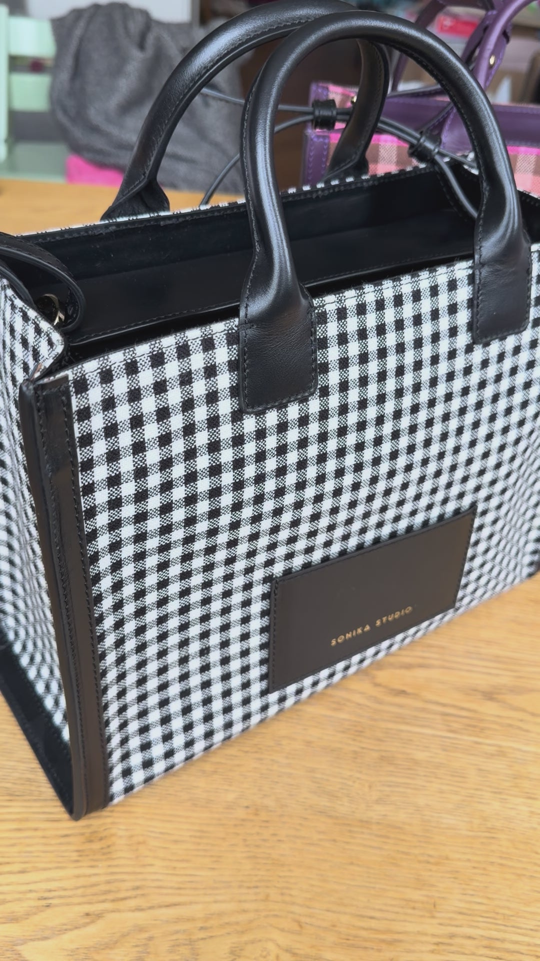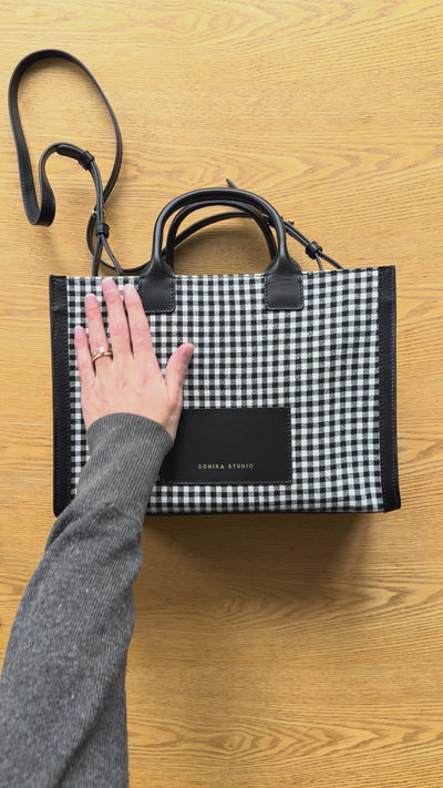 The Tonika tote bag stands out with its graphic lines. A cabas bag with a large storage capacity to carry more than your little essentials. It can be carried by hand with its handle or over the shoulder with its removable shoulder strap. Tonika effortlessly blends elegance and practicality in its distinctive design. Its clean lines and checkered colors add a touch of originality.